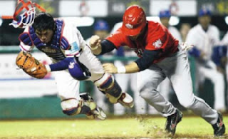 八局上,加拿大打者擊出安打之時,壘上跑者硬闖本壘,與葉君璋正面對決一場本壘攻防戰。電視畫面上,身強體壯的加拿大跑者,用著橄欖球式的野蠻衝撞,死守看著防守本壘的神聖禁地,相對瘦小的葉,正準備承受這百公斤的強力碰撞。這時頭盔頓時像是沒有瞄準的砲彈,亂的彈飛出去。